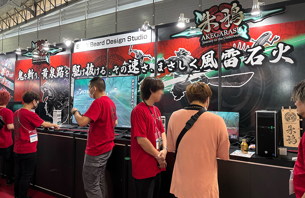 現在制作中の「朱鴉」の展示がされており、試遊コーナーも設けられておりました!